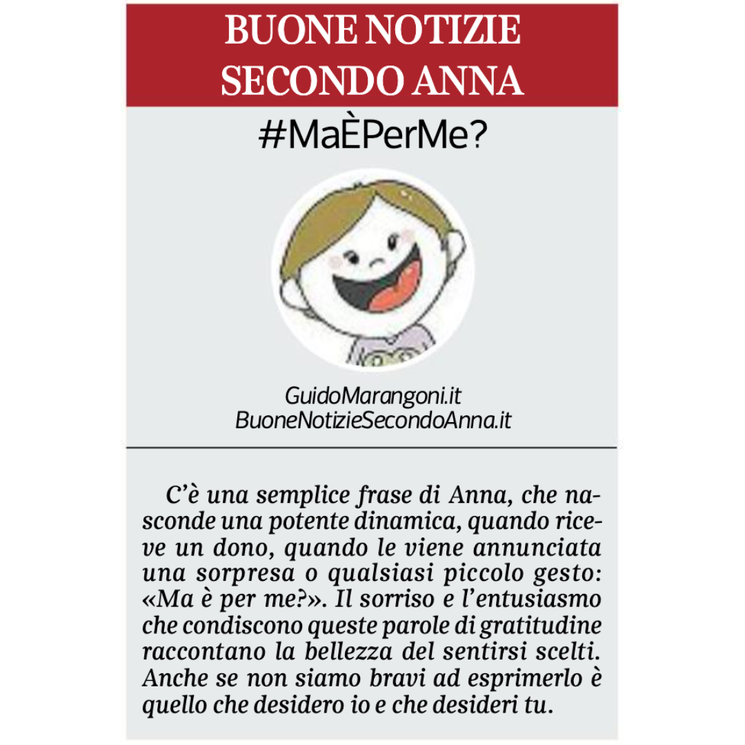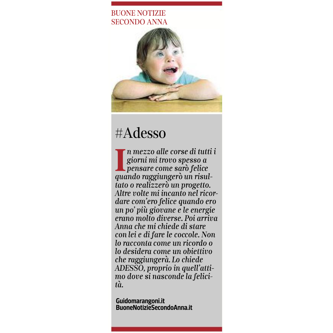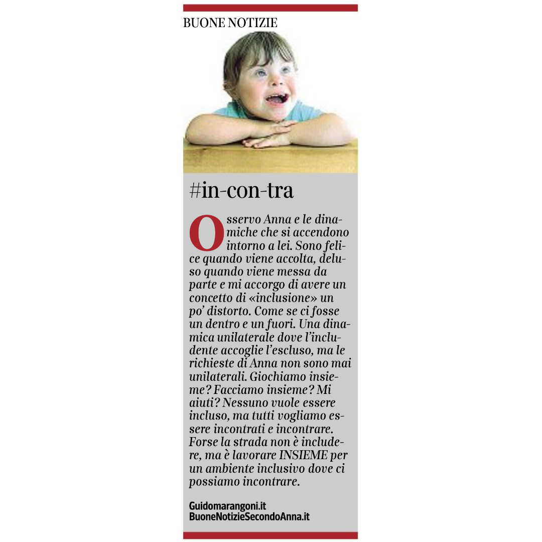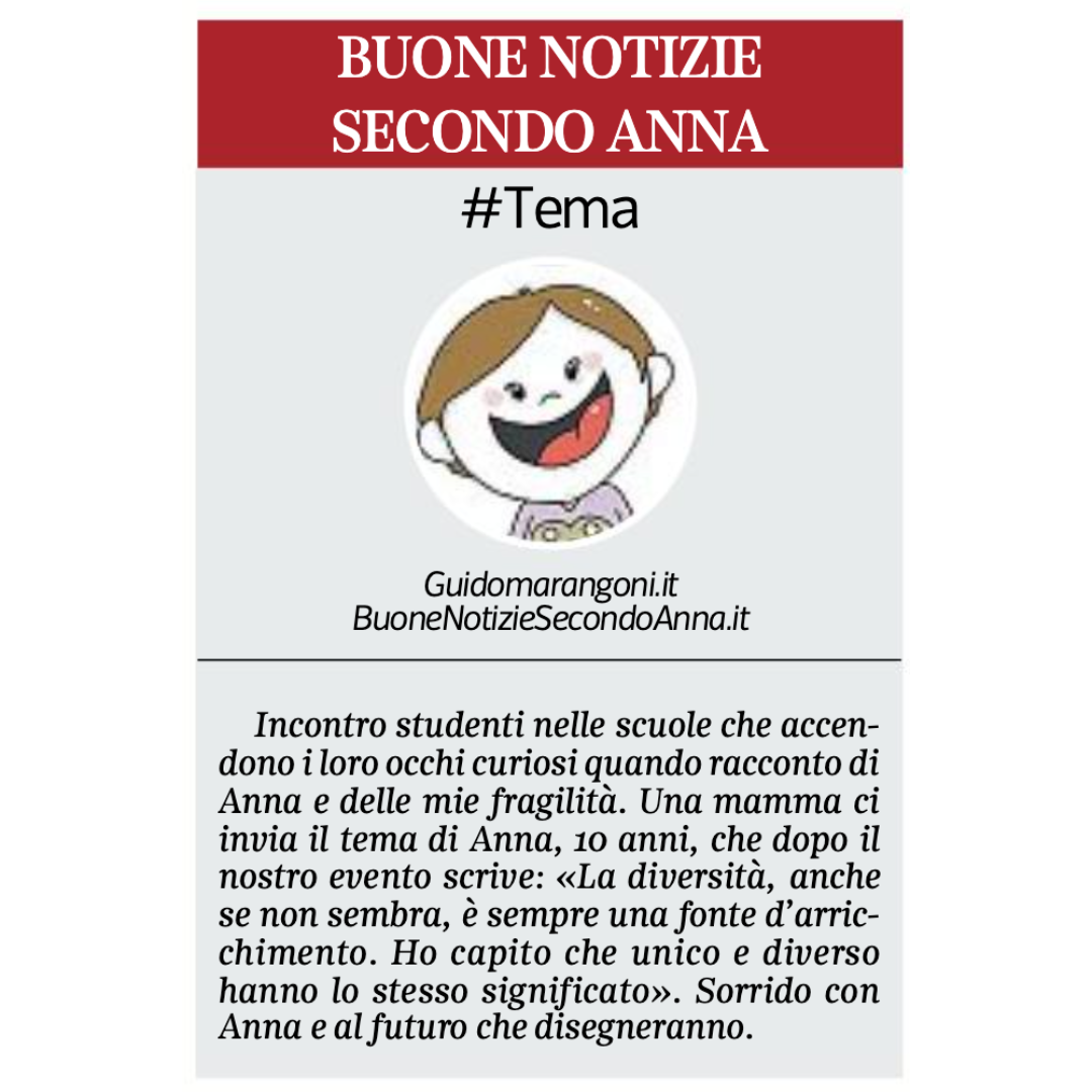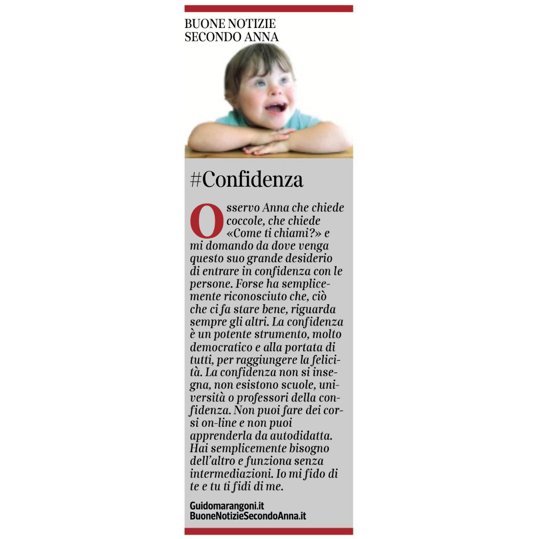 Collaboro con il Corriere della Sera, nell'inserto "Buone Notizie", con uno spazio settimanale dal titolo "Buone notizie secondo Anna".