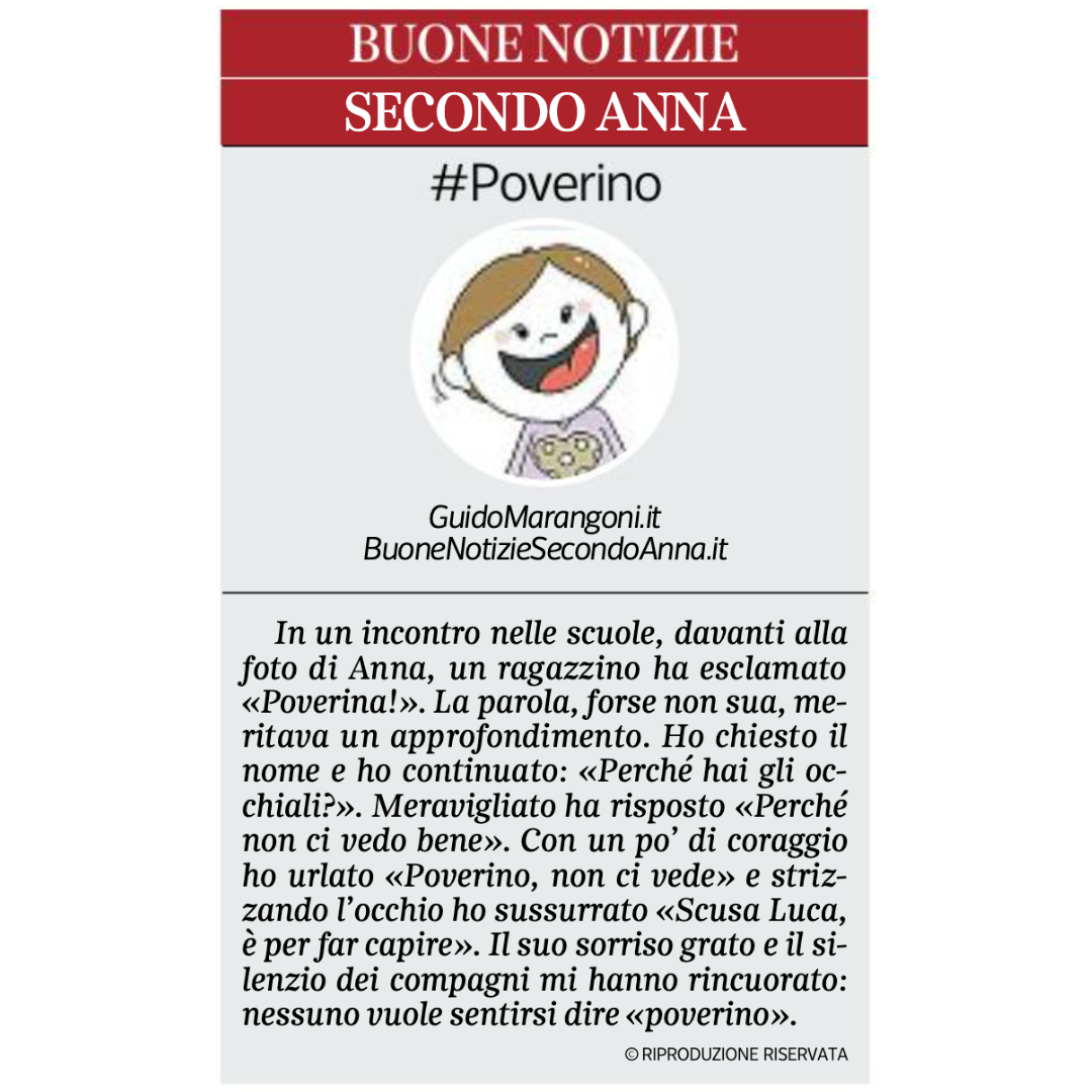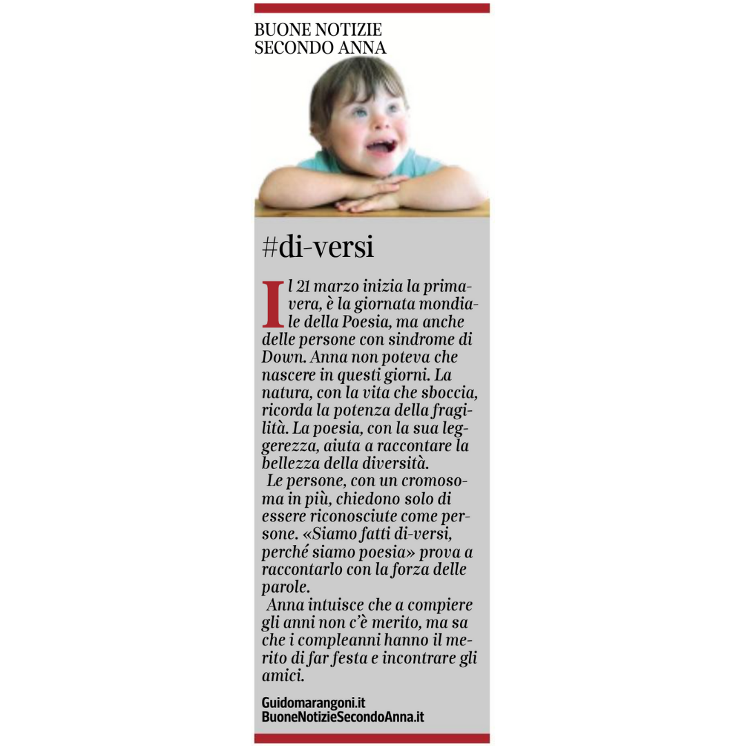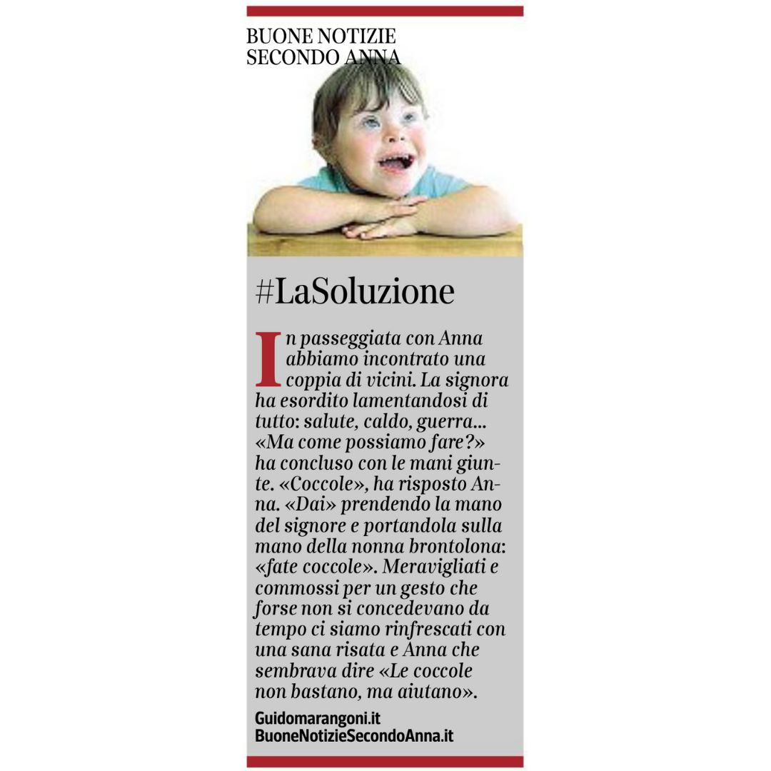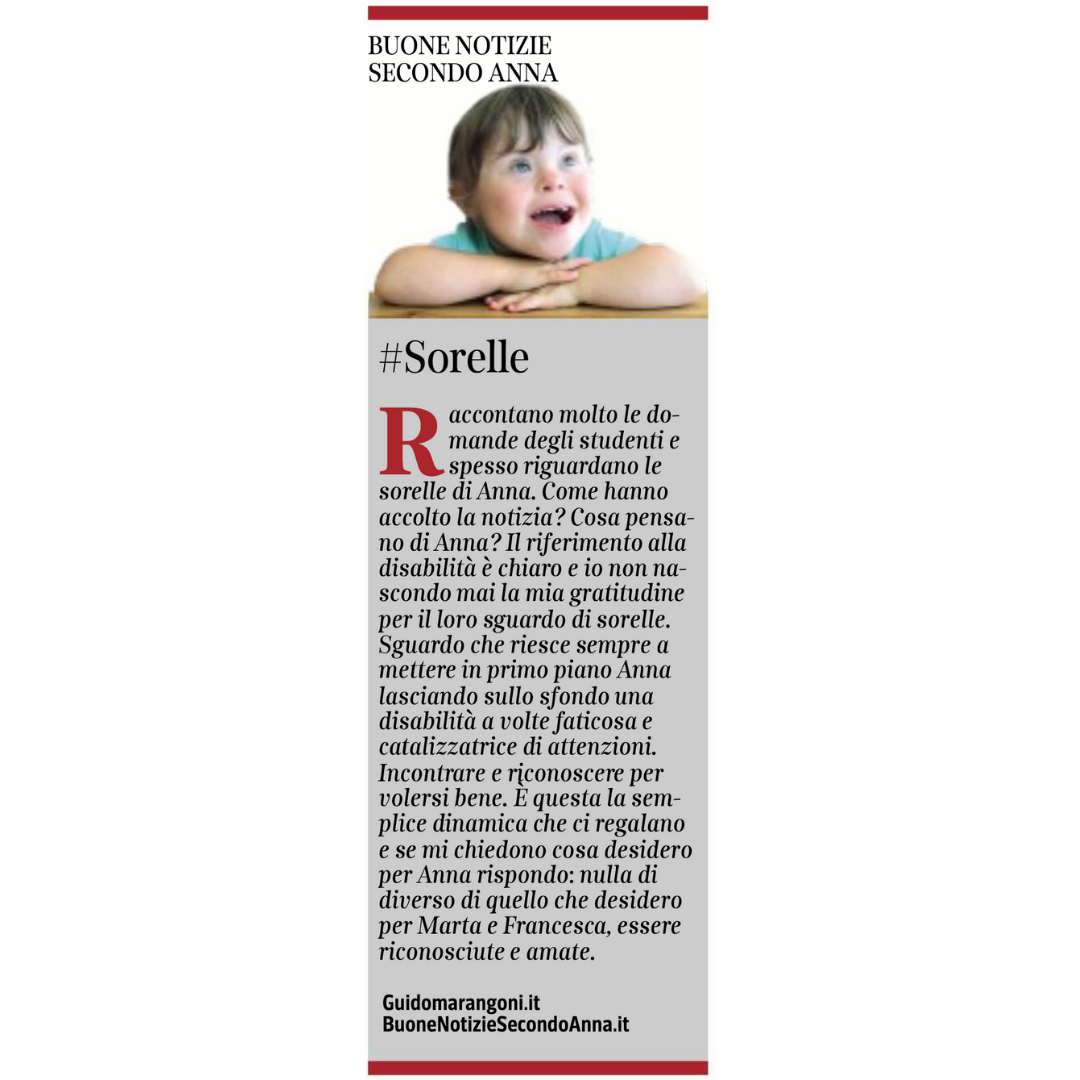 Collaboro con il Corriere della Sera, nell'inserto "Buone Notizie", con uno spazio settimanale dal titolo "Buone notizie secondo Anna".