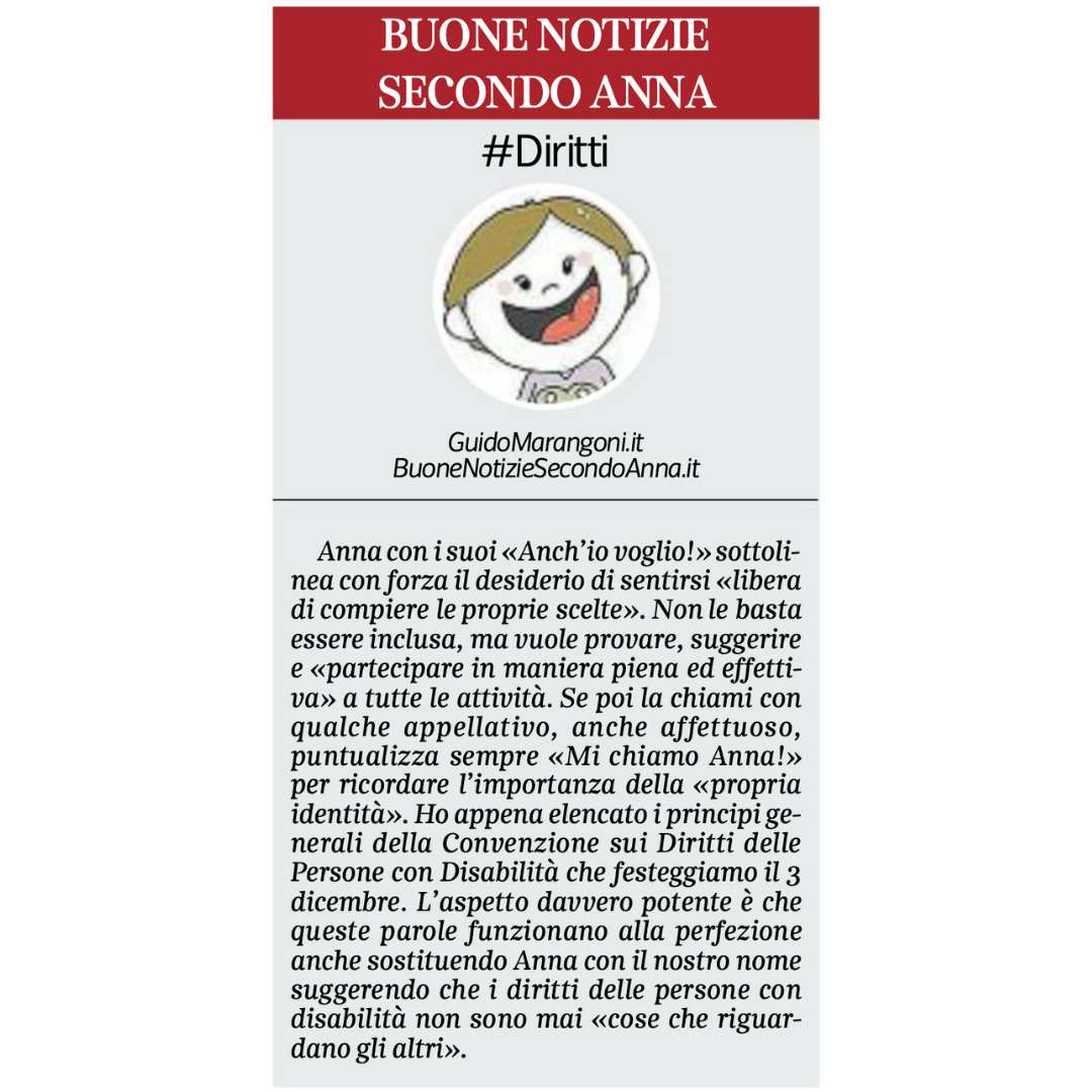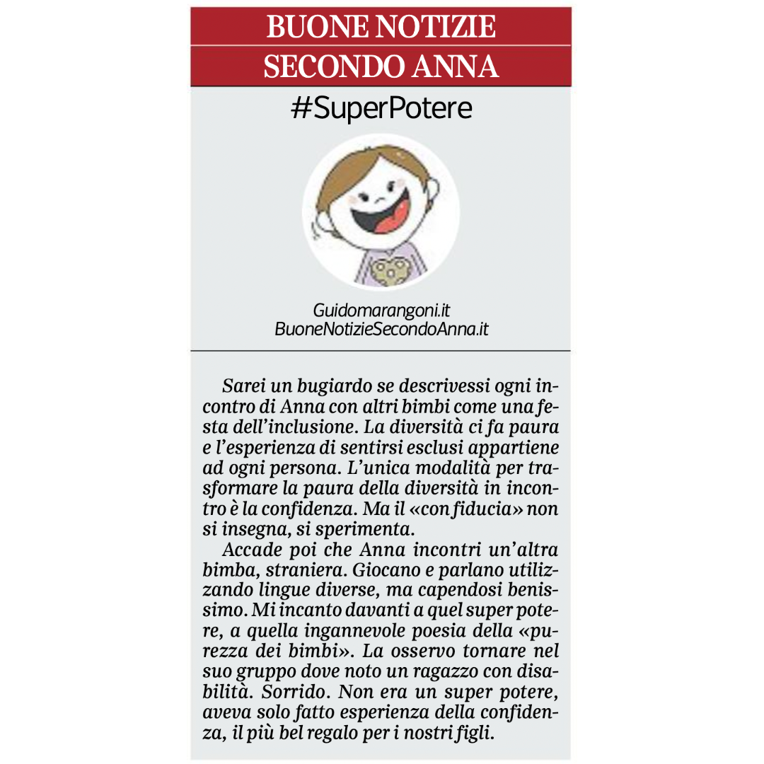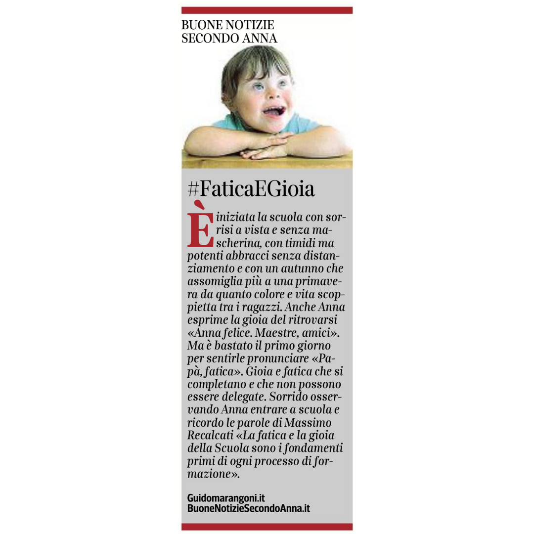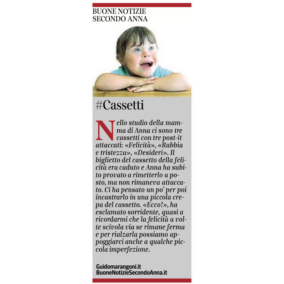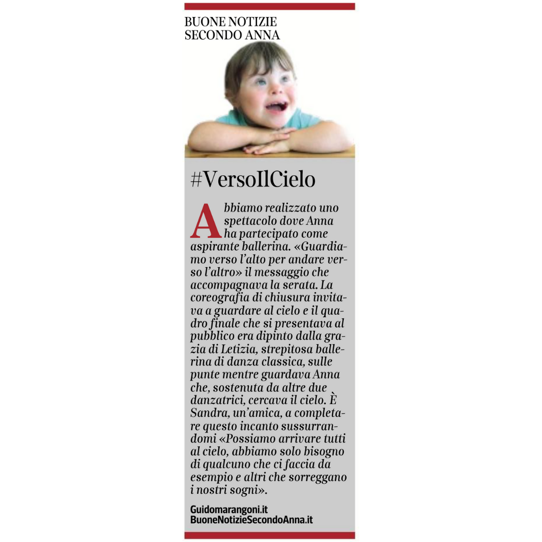 Collaboro con il Corriere della Sera, nell'inserto "Buone Notizie", con uno spazio settimanale dal titolo "Buone notizie secondo Anna".