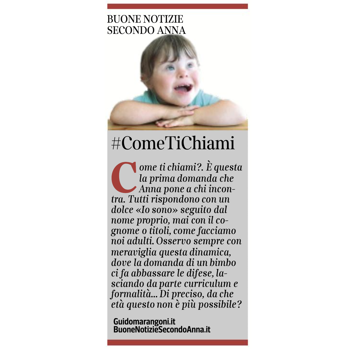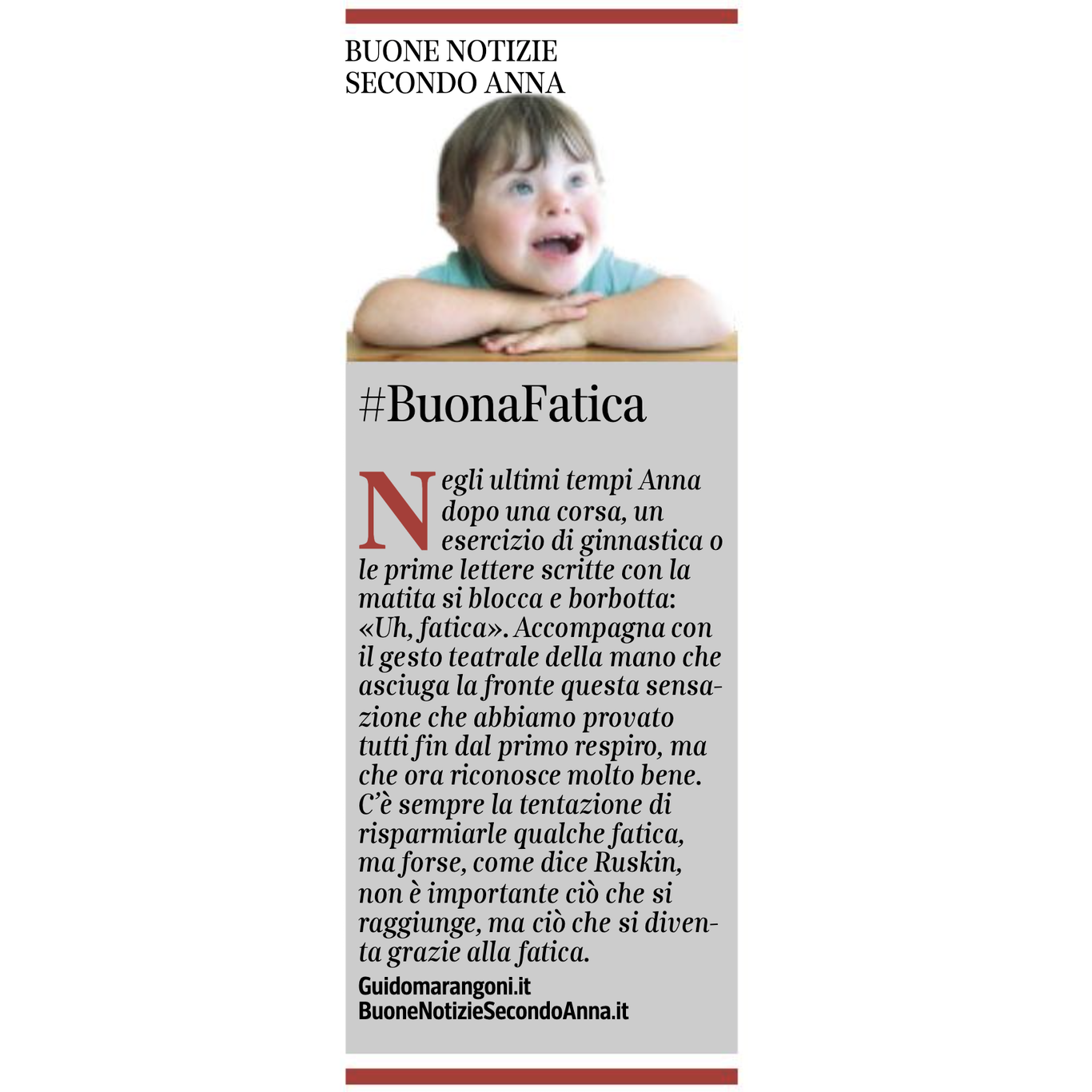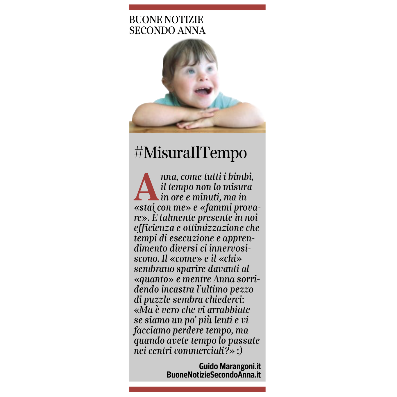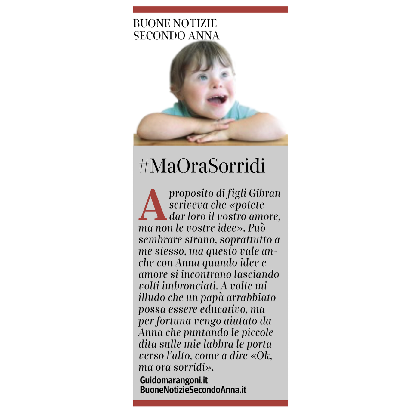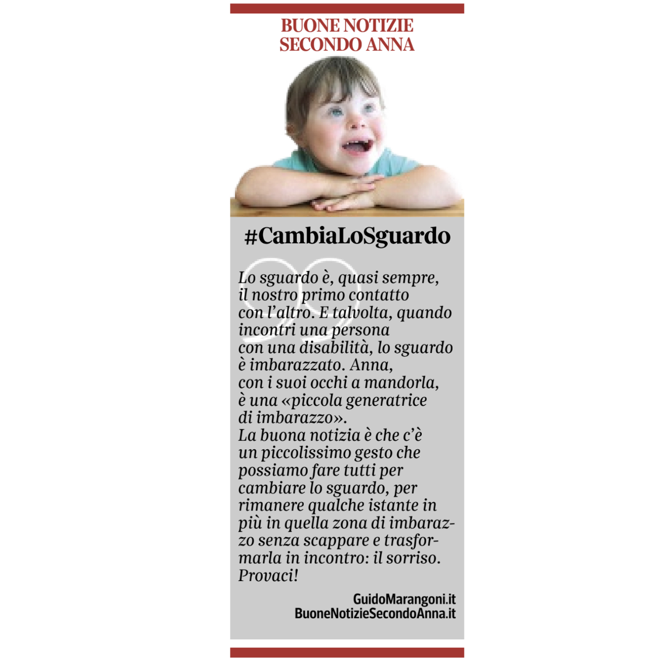 Collaboro con il Corriere della Sera, nell'inserto "Buone Notizie", con uno spazio settimanale dal titolo "Buone notizie secondo Anna".